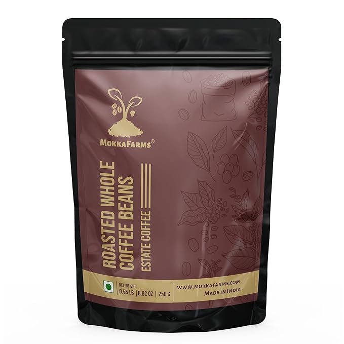 MokkaFarms Roasted Whole Coffee Beans 250g - 100 Pure Arabica | Medium-Dark Roast, Fresh Estate Coffee | Graded AAA Bean | Authentic, Flavour, Aromatic | Farm to Fork | One Way ValveZip-Lock Bag